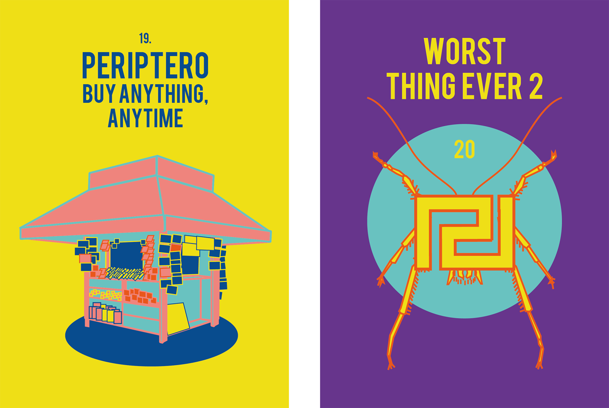 Periptero : Petits kiosques sur le trottoir aux horaires variables où l’on peut acheter boissons, cigarettes, nourriture, presse…