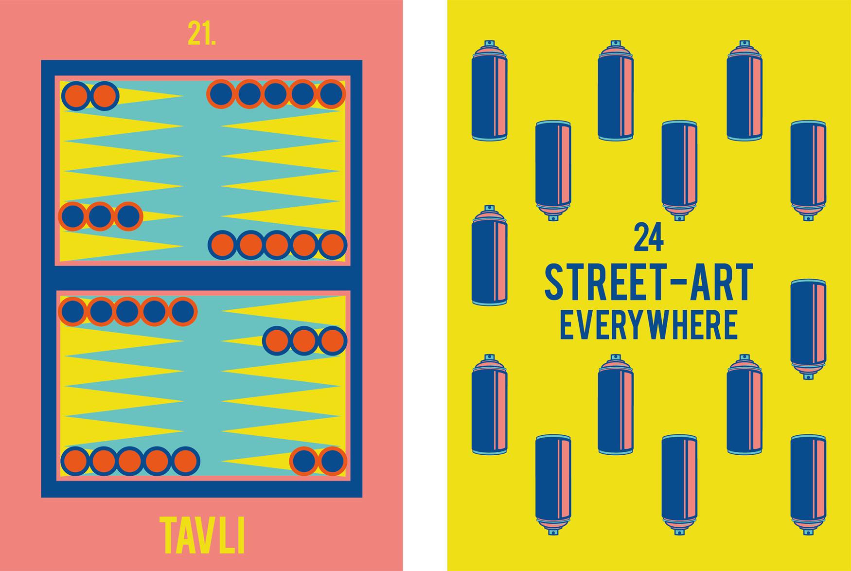 Tavli : Jeu grec ressemblant au backgammon. On voit beaucoup de monde y jouer au café puisque l’on peut la plupart du temps y demander un jeu.