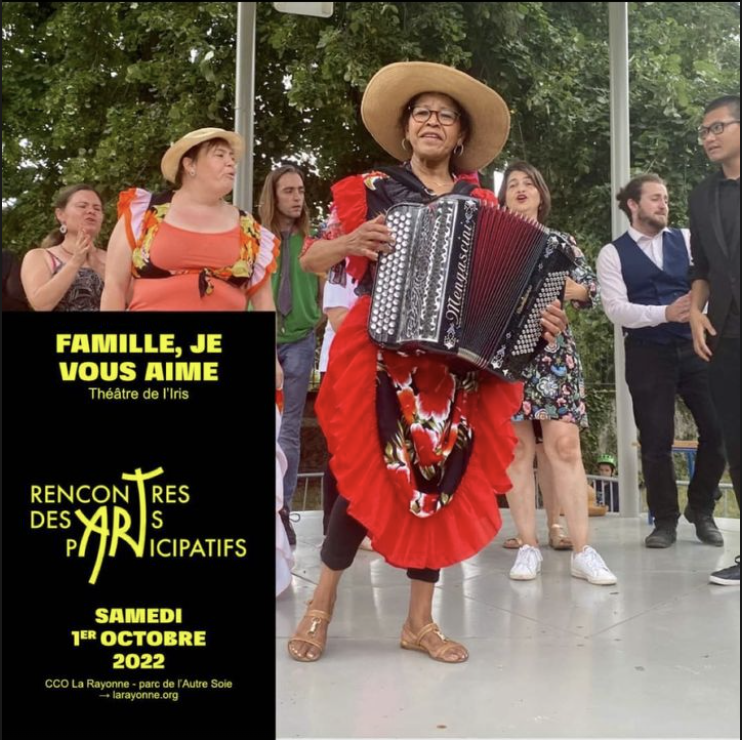 En 2022, le CCO (Centre culturel à Villeurbanne) et le théâtre du Grabuge proposent un nouvel évènement accessible à tous : Les Rencontres des Arts Participatifs. Sur plusieurs jours et plusieurs lieux, des dizaines de spectacles et d’ateliers sont proposés gratuitement. Les deux commanditaires ont besoin d’une charte graphique de l’évènement, de plusieurs supports généraux pour l’annoncer (affiches, tracts, web…) et de déclinaisons pour détailler l’heure et le contenu des différents spectacles. La journée est clôturée par des concerts, pour lesquels on s’inspire de la communication réalisée pour la fête internationale du 14 Juillet.